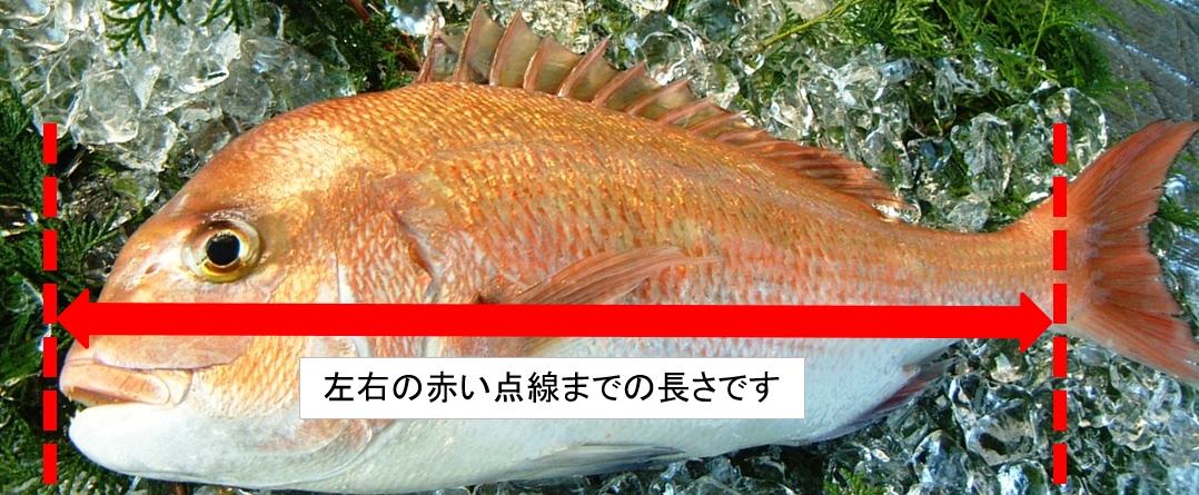 当HPの商品説明に記載されている鯛のサイズは、以下のように計測しています。
